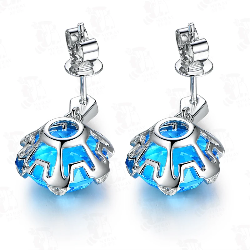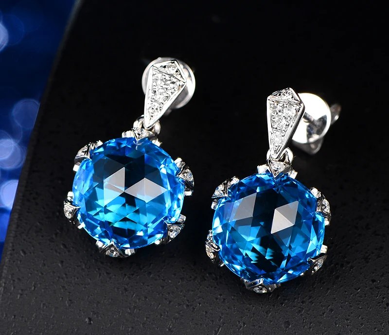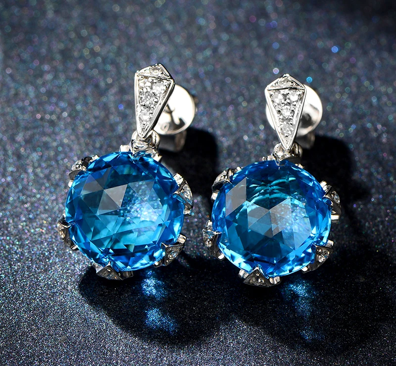 Серьги из чистого золота 750 пробы, с натуральным топазом, с бриллиантами, 2020