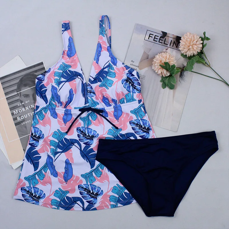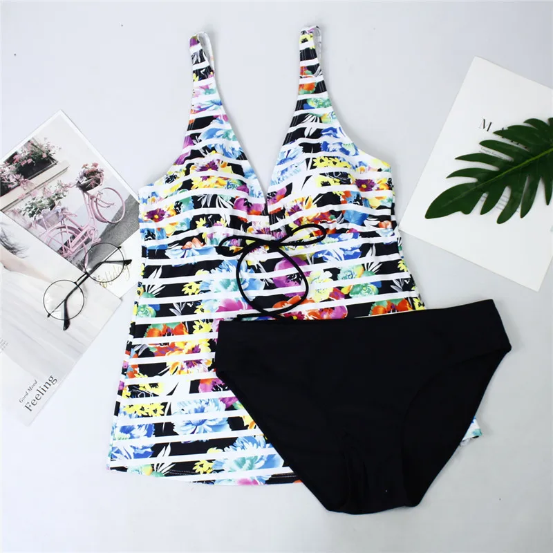 Купальники женские Танкини размера плюс купальник из двух частей купальный костюм 2019 танкини винтажный комплект бикини XXXL maillot de bain femme