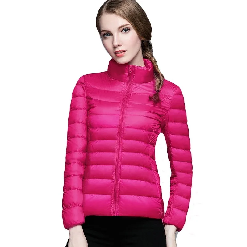 Женский пуховик с воротником-стойкой на осень и зиму, ультра-светил...
