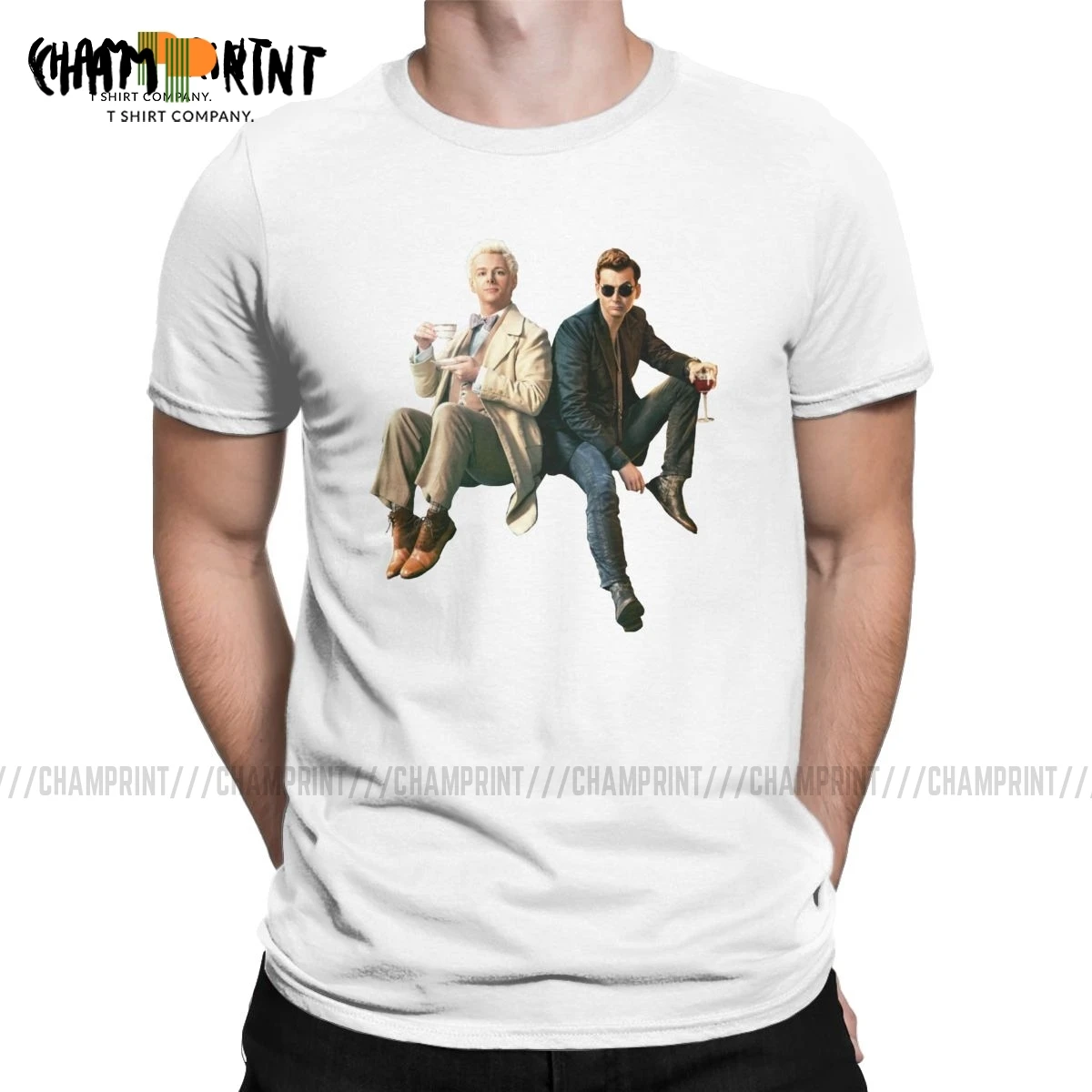 Мужские футболки с ремешком кто-то, хорошие O мужские s нестираемые Топы Aziraphale Crowley, Винтажная футболка с круглым вырезом, футболки