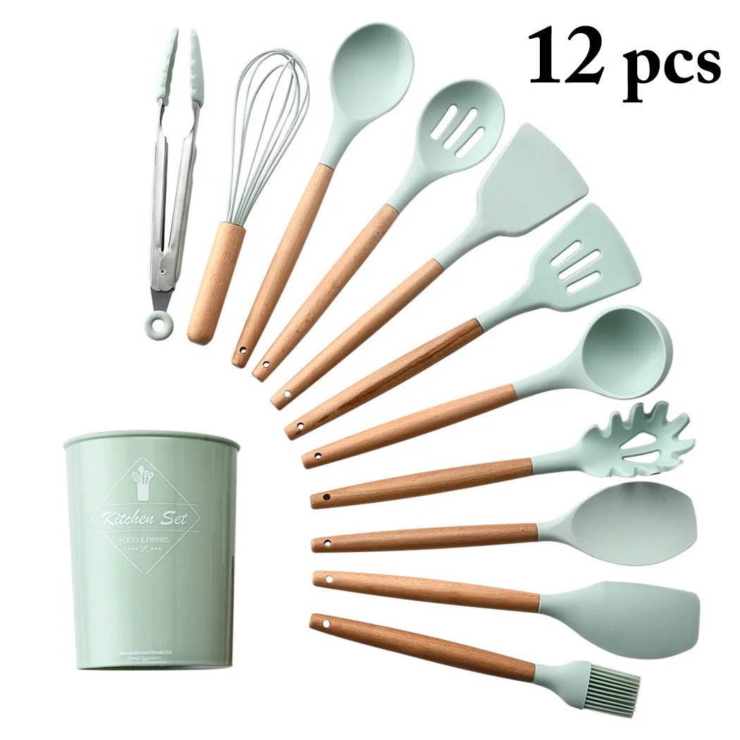 Набор кухонных принадлежностей из силикона, 12 в 1, термостойкая де...