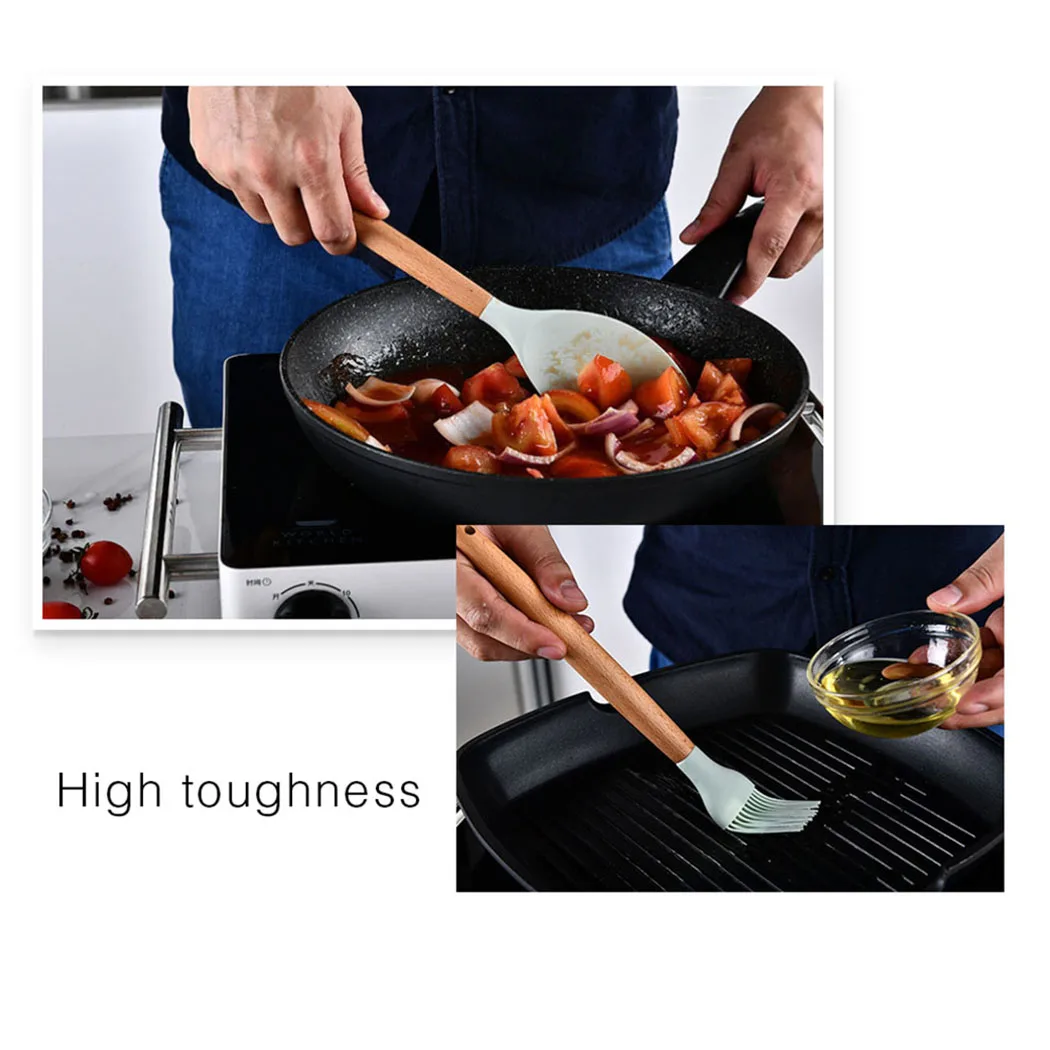Набор кухонных принадлежностей для кухни, силиконовые, с деревянным...