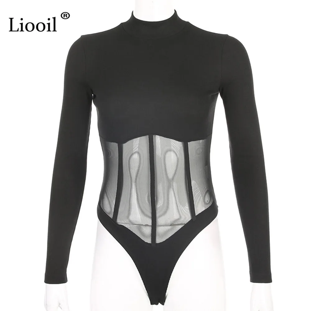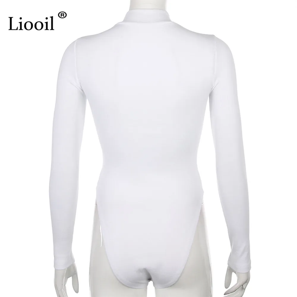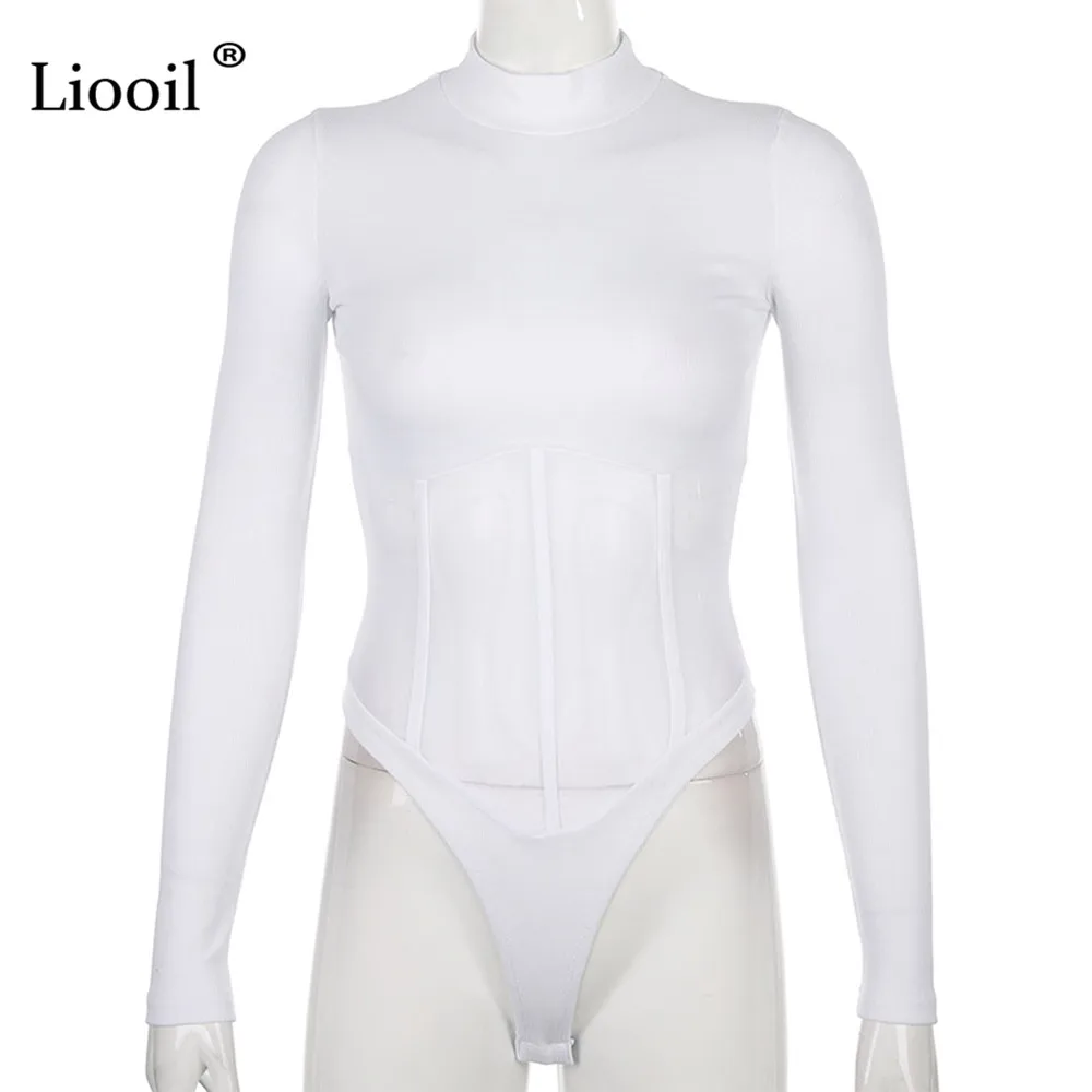 Liooil черно-белые ранние Топы для женщин сексуальные Клубные наряды с длинным рукавом Водолазка Bdycon вечерний комбинезон клубный комбинезон