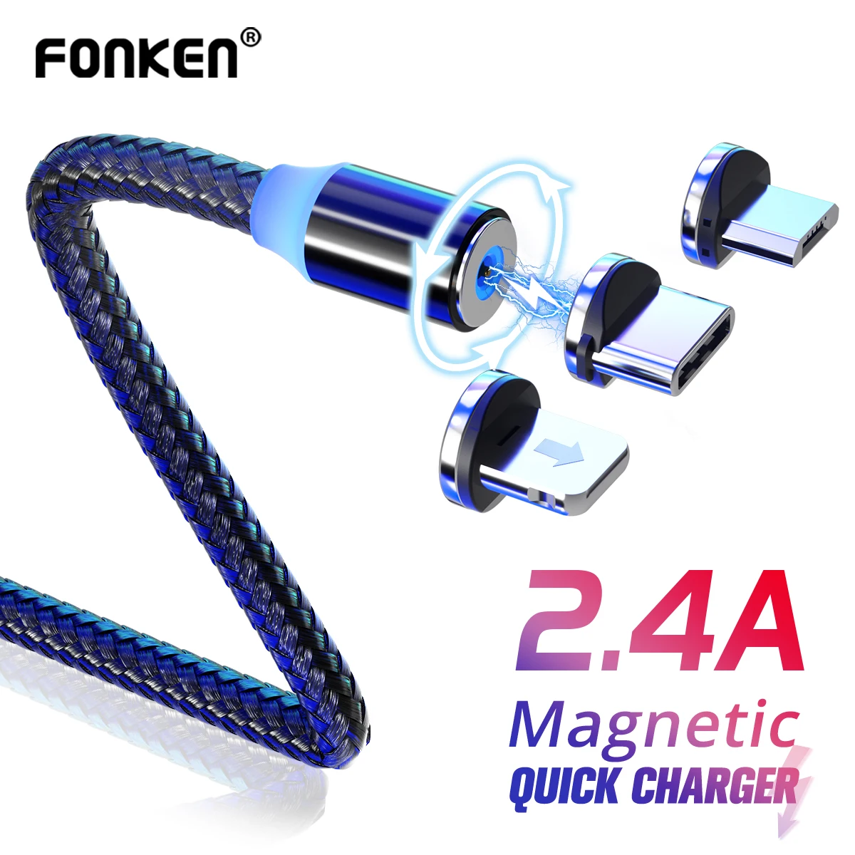 Кабель для зарядки FONKEN, USB Type-A Micro-USB Type-C, 2.4 A, 1м 2м