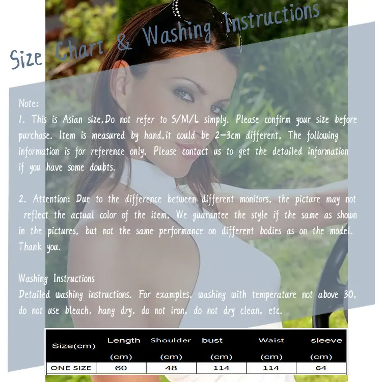 Один размер обхват груди 114 см Длина 60 см плечо 48 см Рукав 64 см Есть погрешность в 1-3 см, пожалуйста, внимательно проверьте перед покупкой. Спасибо