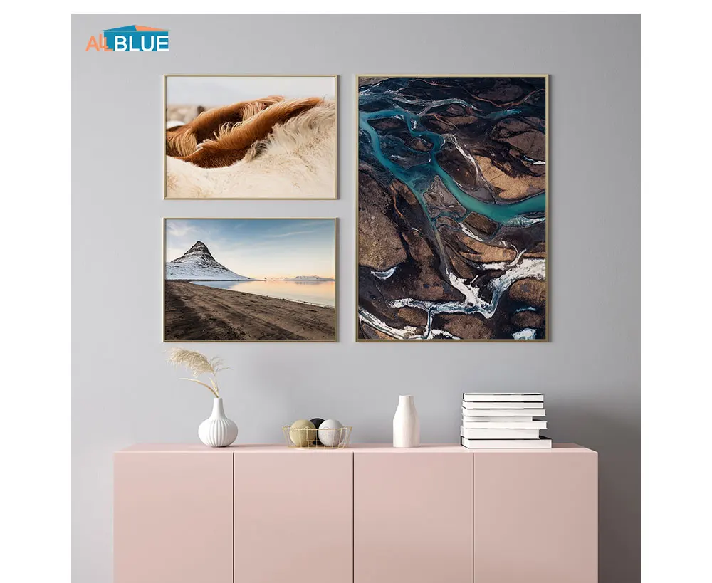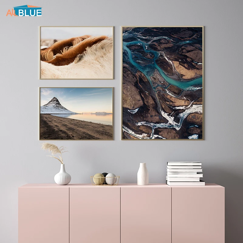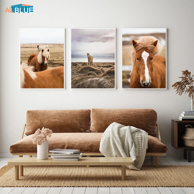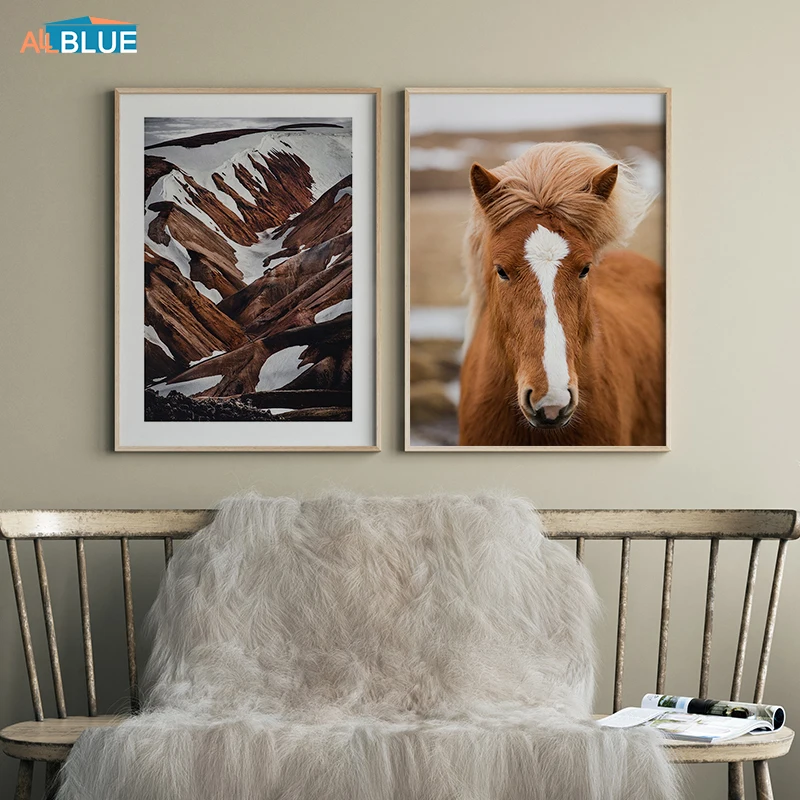 Животное, лошадь, пейзаж, горы, озеро, природа, живопись для гостиной, Настенная картина, холст, настенное искусство, скандинавский постер, печать, Декор для дома