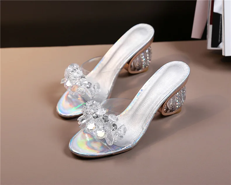 Женские босоножки из ПВХ, прозрачные туфли на высоком каблуке с открытым носком, с кристаллами, B164, 2020