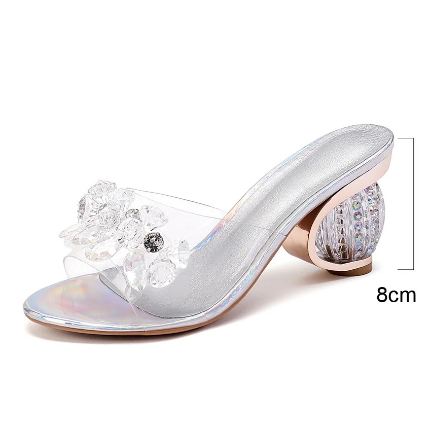 Сандалии-желе женские на высоком каблуке, ПВХ, прозрачные, с криста...