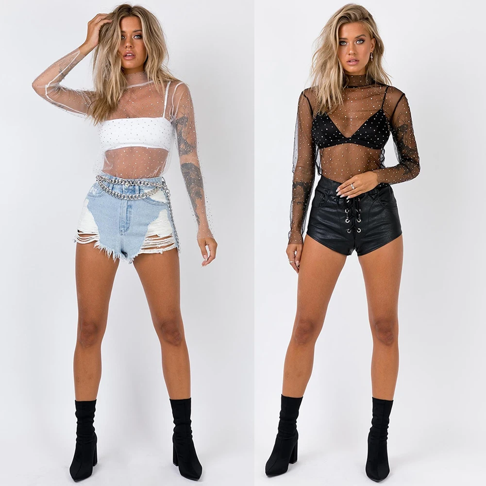 Hirigin 2021 женский сетчатый топ, сексуальный прозрачный топ, водолазка, прозрачная одежда, женский костюм