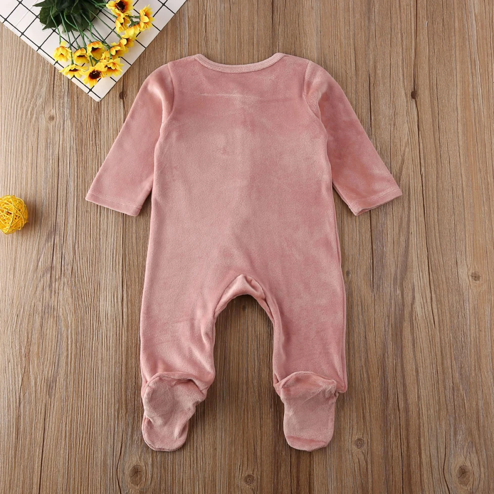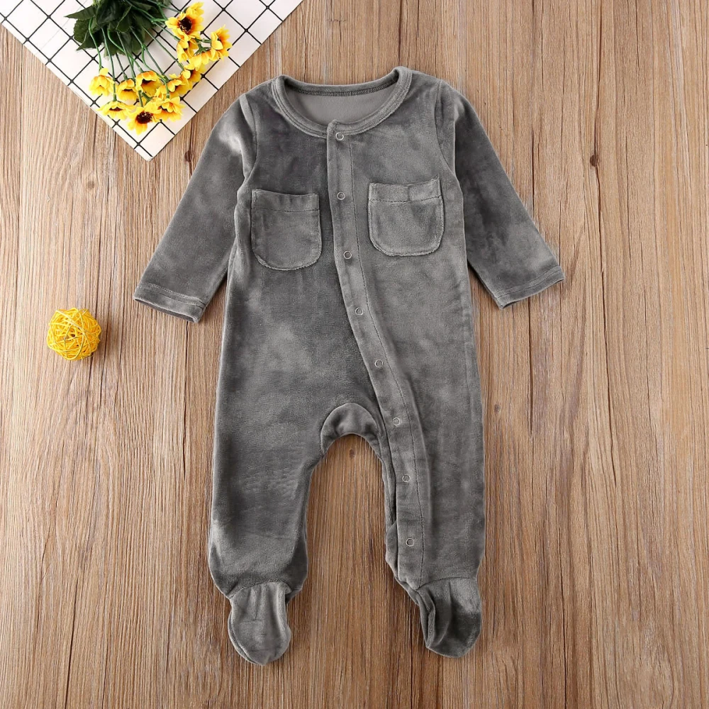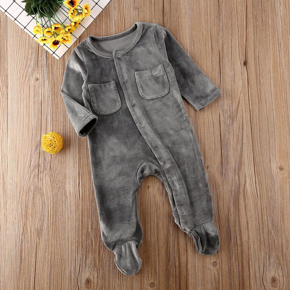Однотонный бархатный комбинезон с длинным рукавом для новорожденных девочек и мальчиков, однобортный комбинезон, наряды