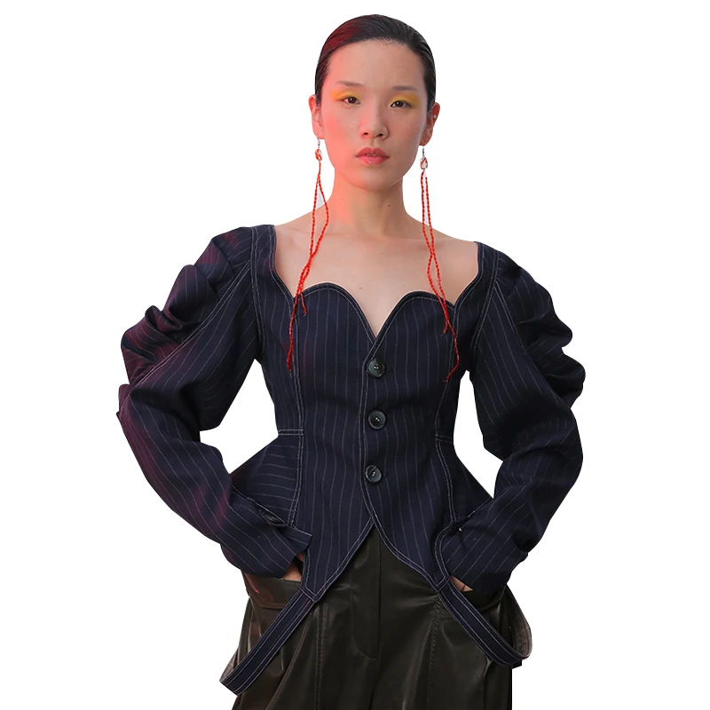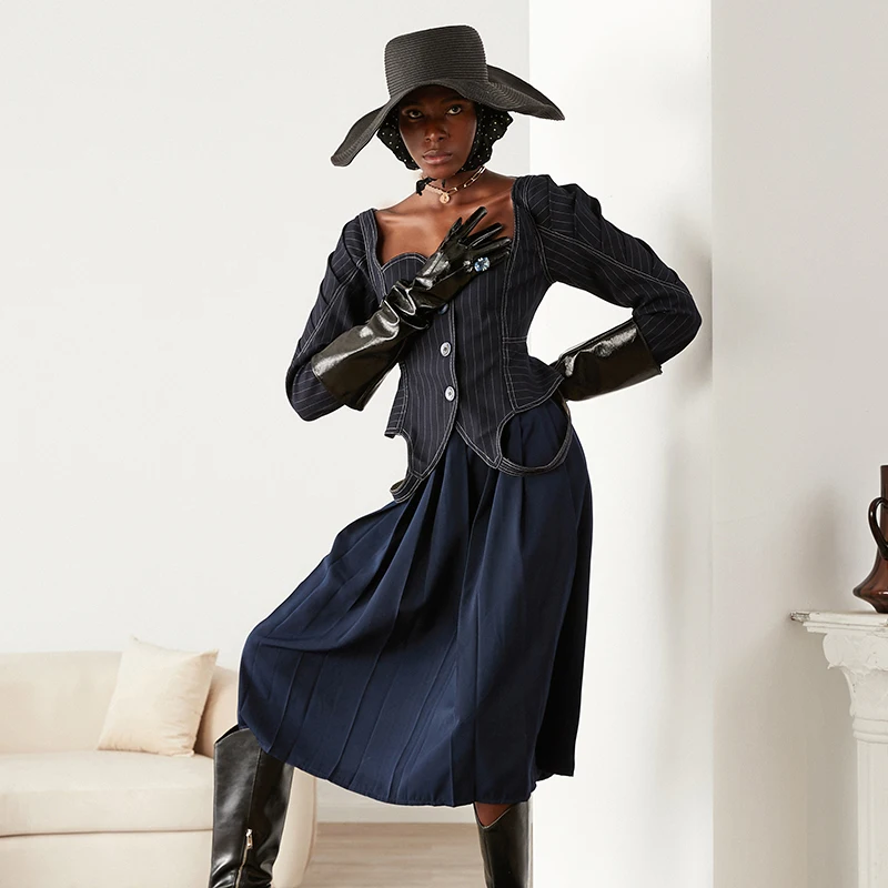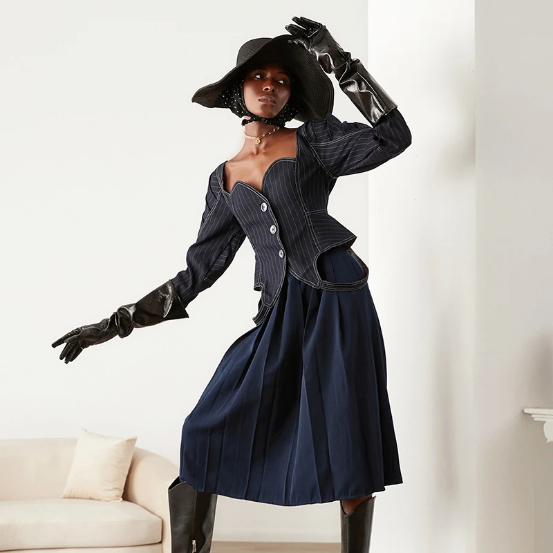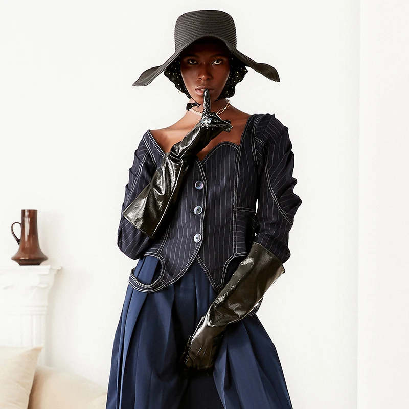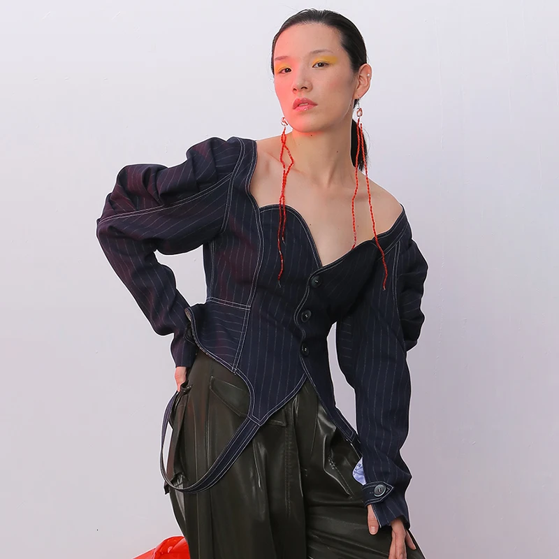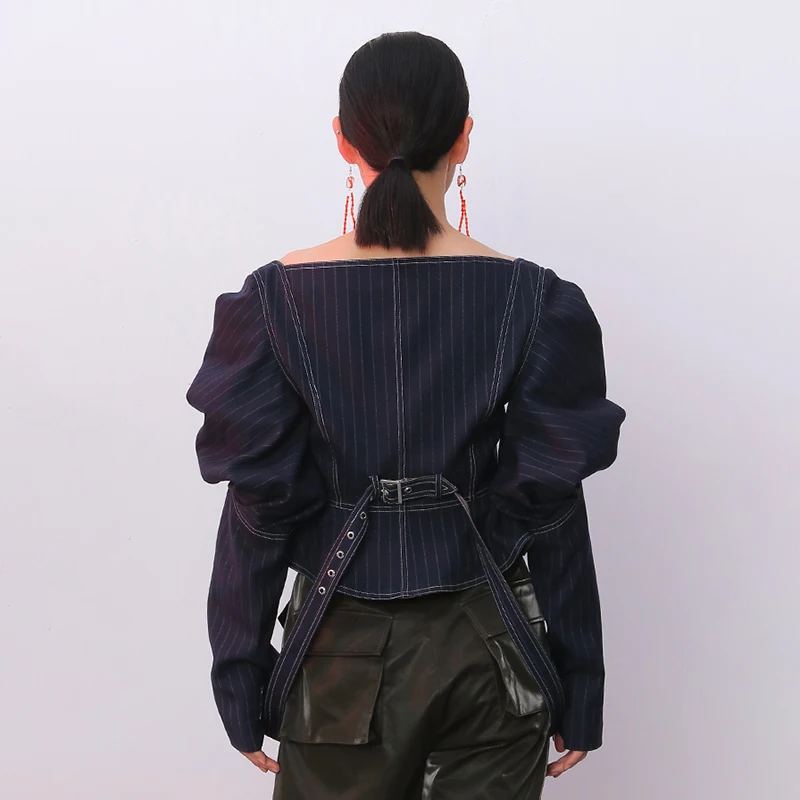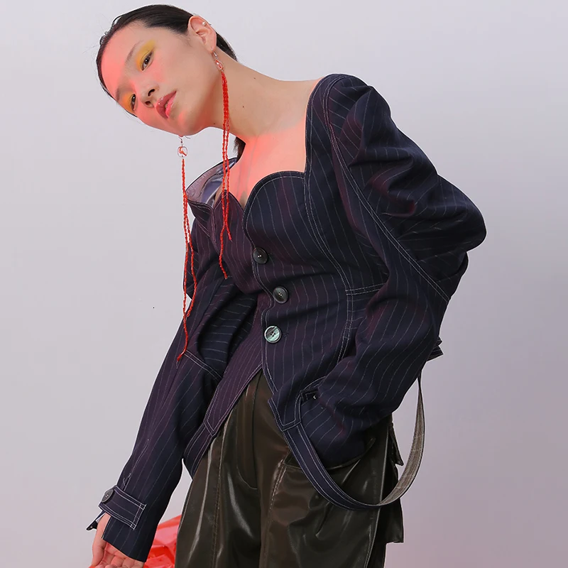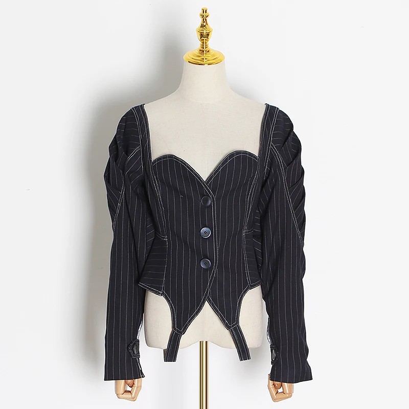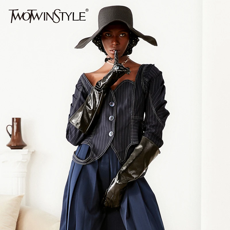 Женское пальто в полоску TWOTWINSTYLE, с квадратным вырезом, длинными рукавами-фонариками, 2020