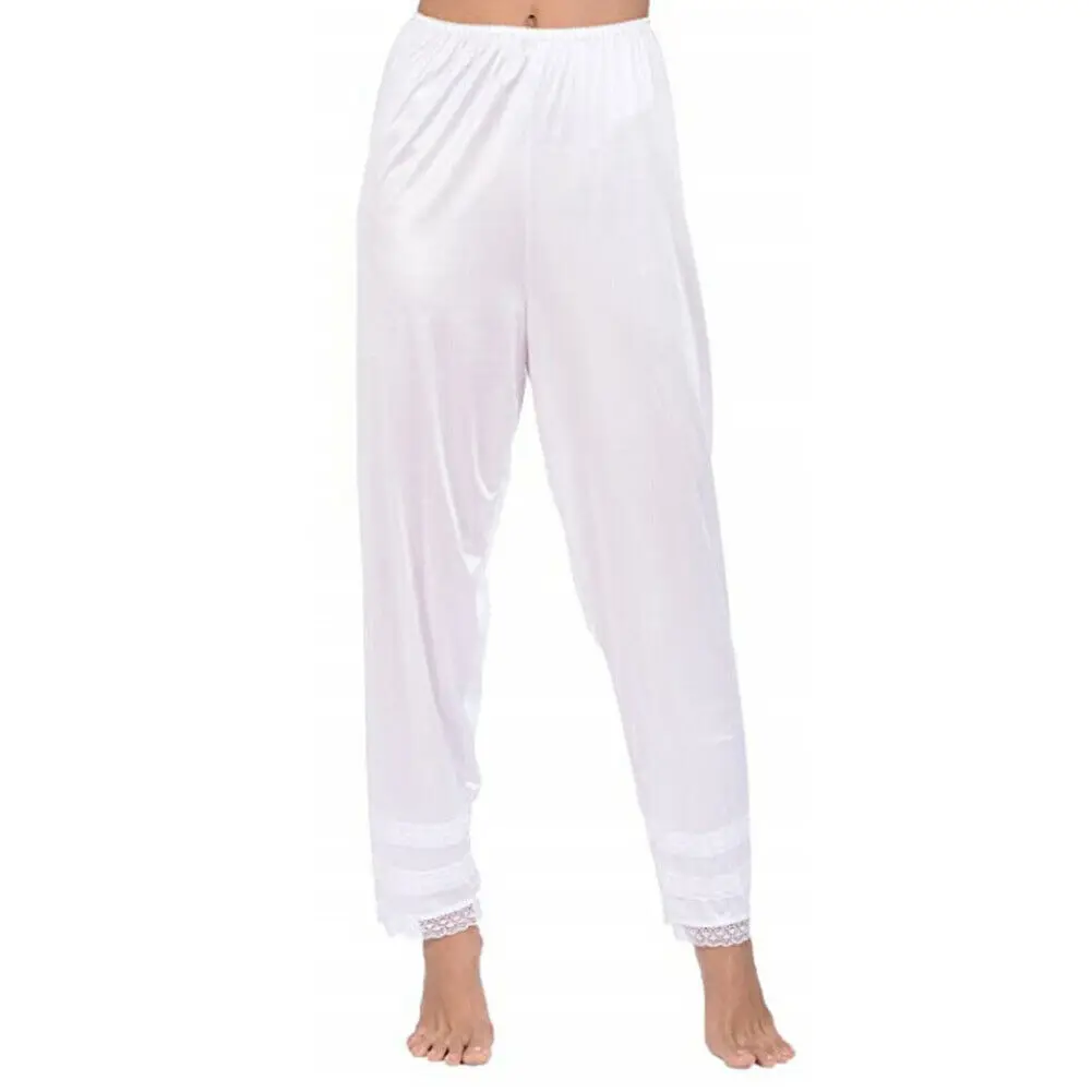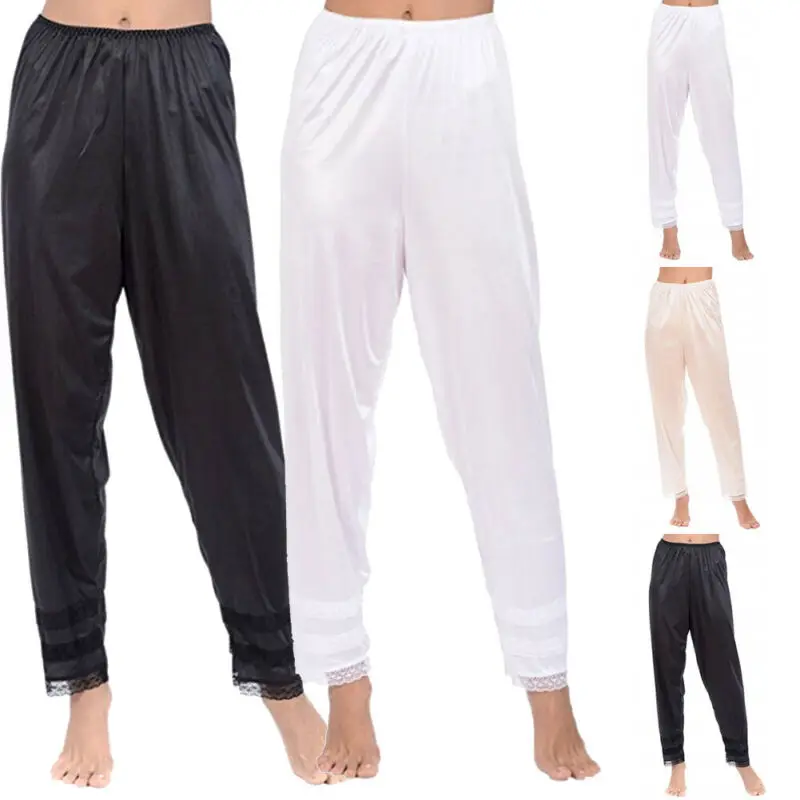 Женские пижамные штаны с широкими штанинами, повседневные брюки для отдыха, атласные кружевные лоскутные пижамы, брюки