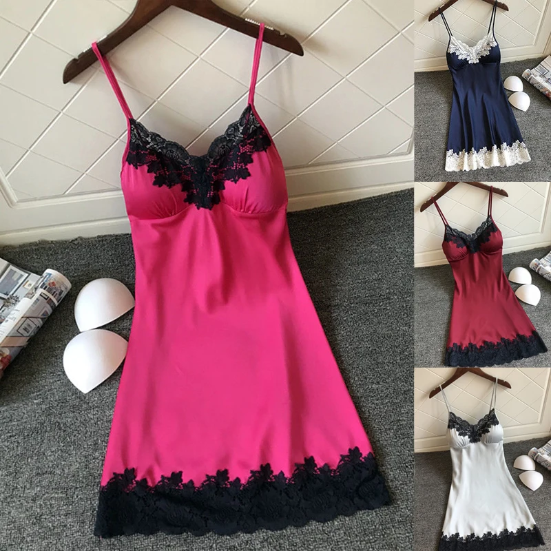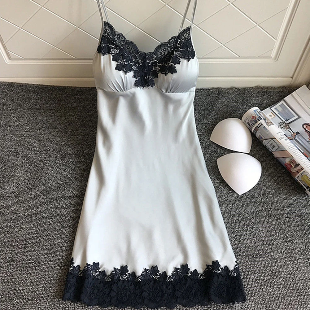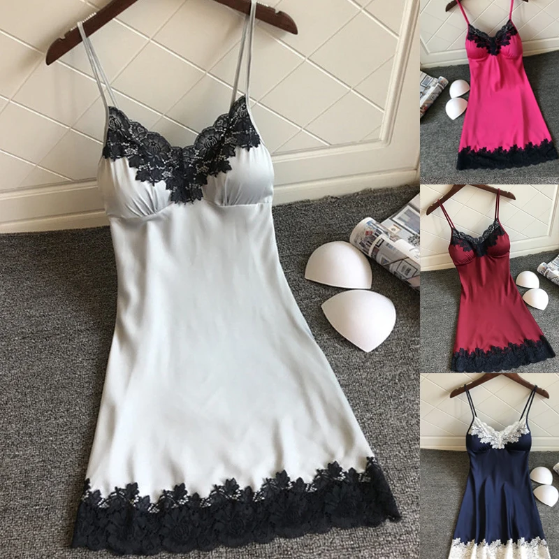 Сексуальное женское нижнее белье, шелковое платье с кружевами Корот...