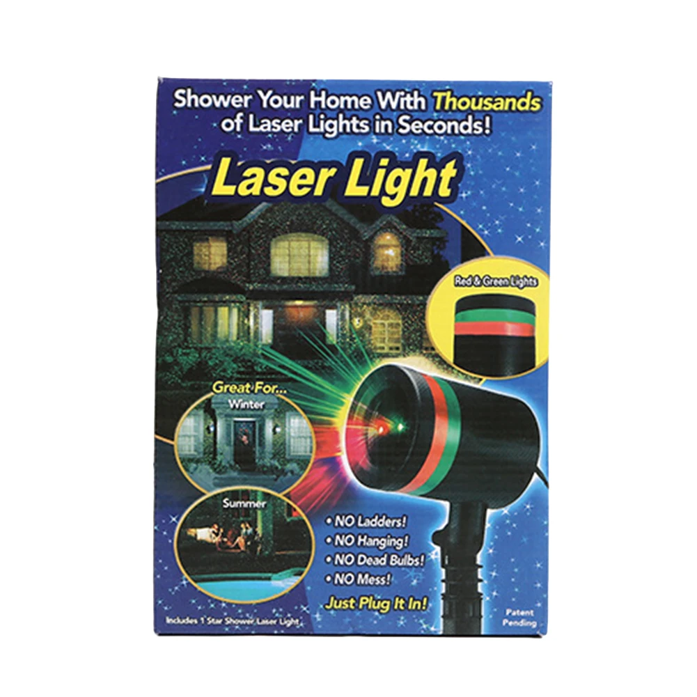 Уличный светодиодный сценический светильник для сада, дерева, движущегося лазерного проектора, для рождественской вечеринки, украшения дома, лампа с эффектомОписание:Применение: Домашние развлеченияТип штекера: США/ЕС/Австралия/ВеликобританияОсобенности:-Садовое освещение для дерева и стен.-Украсьте любую поверхность калейдоскопом блестящего цвета.-Безопасность для ваших глаз, каждая точка содержит плохой светильник (низкая яркость каждой точки).-Умный размер, простота установки.-5 Вт, но может освещать большую площадь.-Водонепроницаемая конструкция (IP-44), легкая для украшения двора-Установите за несколько минут.-Доступны в помещении или на улице. Прочный, даже в очень холодные дни, он может хорошо работать.-Специальный праздничный дисплей в саду, волшебный сверкающий эффект на ваших деревьях и кустах.Материал: пластикЦвет светильник: зеленый, красныйВходное напряжение: 110-240 В переменного тока, 50-60 ГцВыходное напряжение: 5 В постоянного тока 1 АМощность: 5 ВтИсточник светильник светодиодныйПосылка:1 сцсветильник1 x Трансформатор источника питания в списке1 х наземный столб