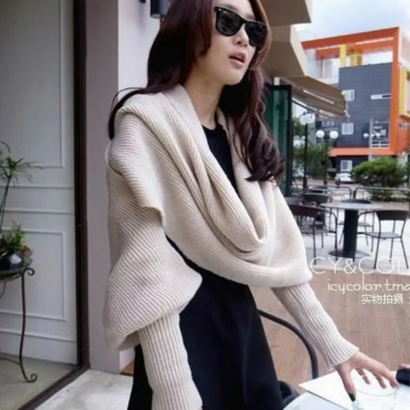 10 цветов, Женский вязаный свитер, топы, шарф с рукавом, зимняя теплая шаль, шарфы, свитеры
