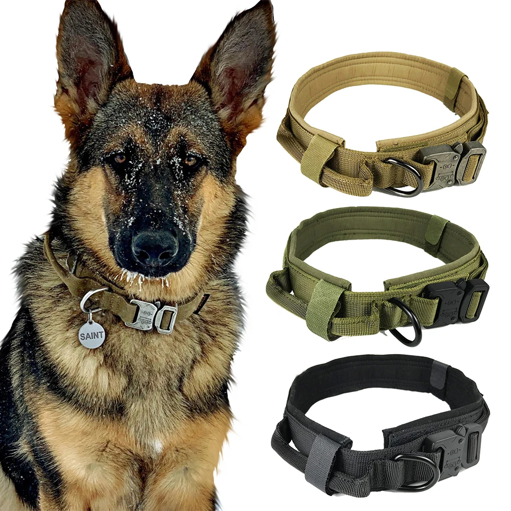 Ошейник для собак, военный тактический ошейники Управление ручка обучающая Кошка Собака Воротник нейлон аксессуары для домашних животных Регулируемый