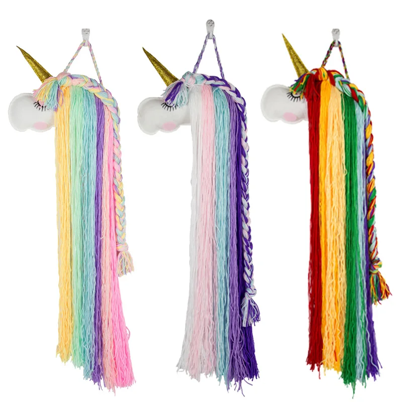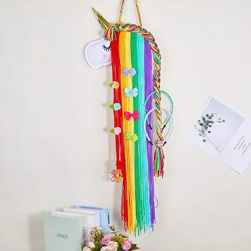 Вешалка для волос ручной работы в виде единорога, веревка, искусственная веревка для головы, настенный шерстяной Органайзер с кисточками, держатель для аксессуаров для волос
