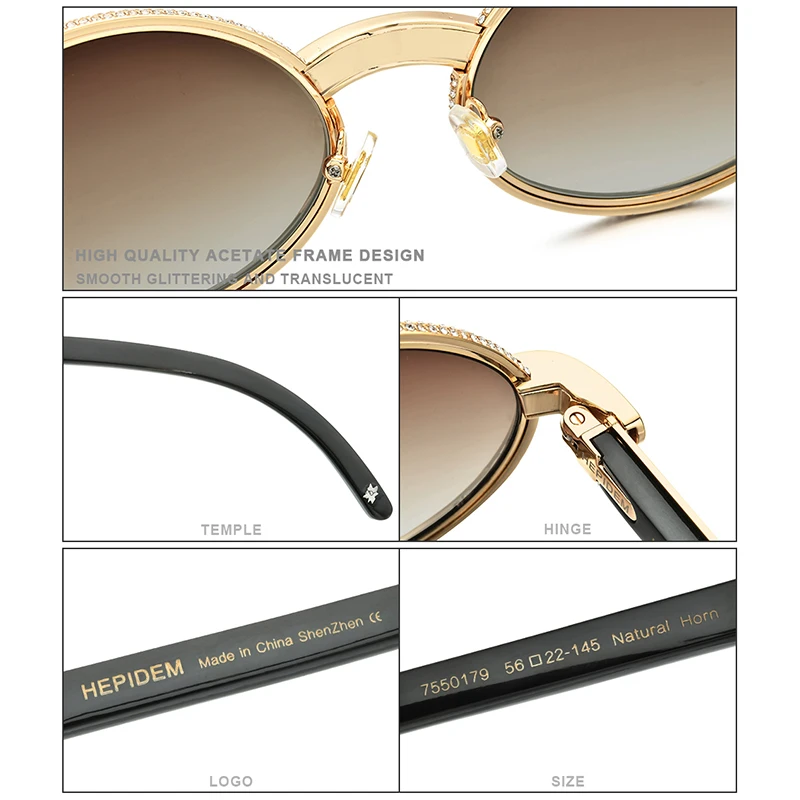 HEPIDEM Солнцезащитные очки-Баффы унисекс, круглые Роскошные роскошные очки с рогами буйвола, 7550179