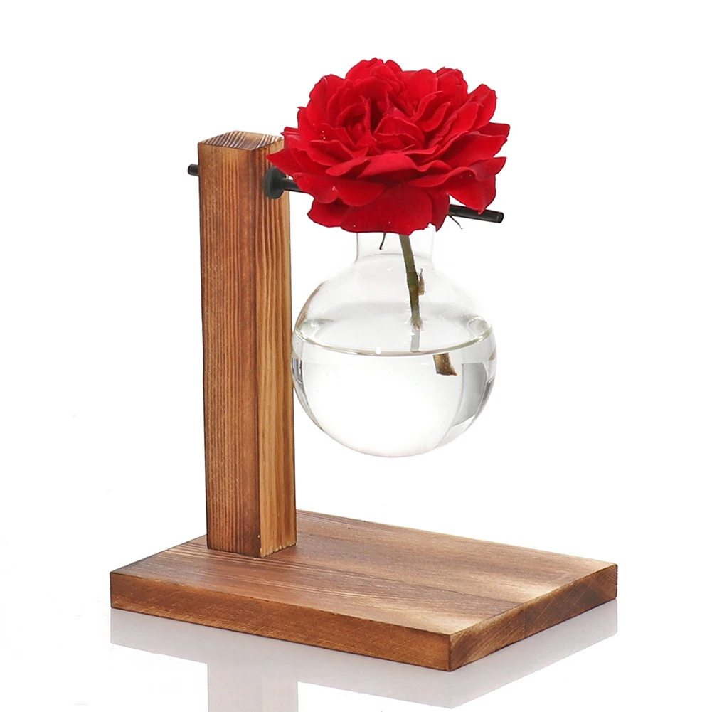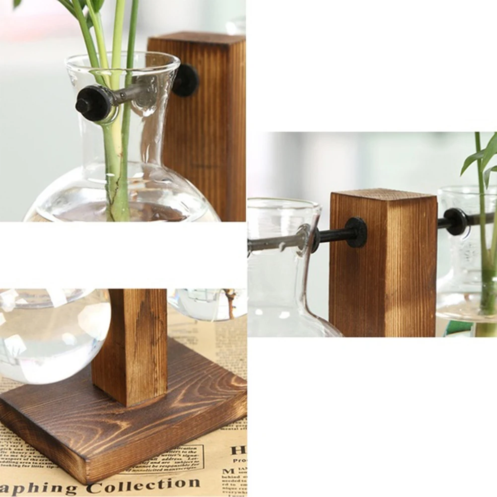 Деревянная рамка-подставка, стеклянная бутылка, прозрачная ваза для растений, горшок для террариума, Домашний Настольный Декор