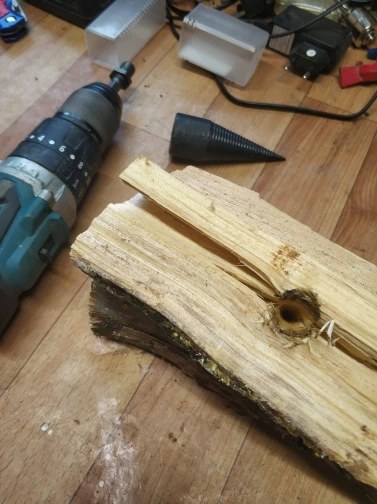 Получил, промахнулся я с этим заказом, надо было заказывать большего диаметра. 32 мм. маловат. Мне нужно для получения щепок для растопки. Шуруповертом получается расщеплять только сосновые рейки. Проверю как будет работать мощная тихоходная дрель на поленьях.
