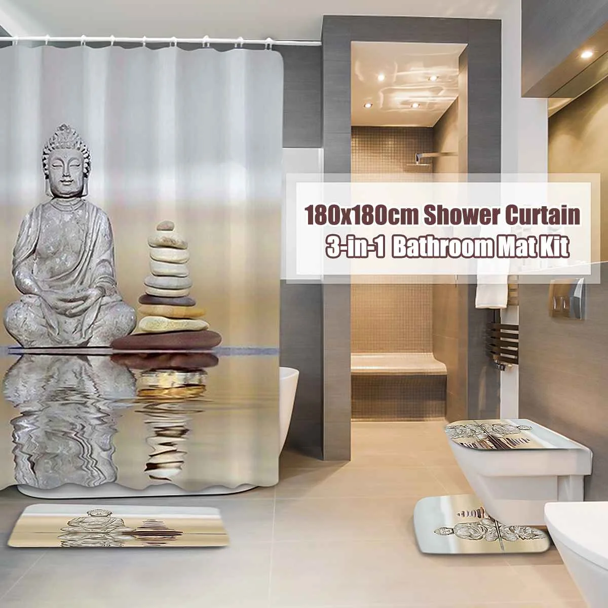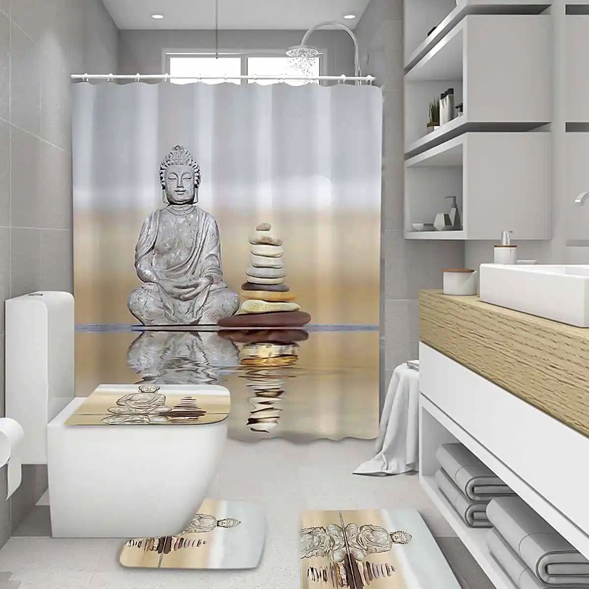 Водонепроницаемая душевая занавеска, с принтом в виде Будды, 12 крючков