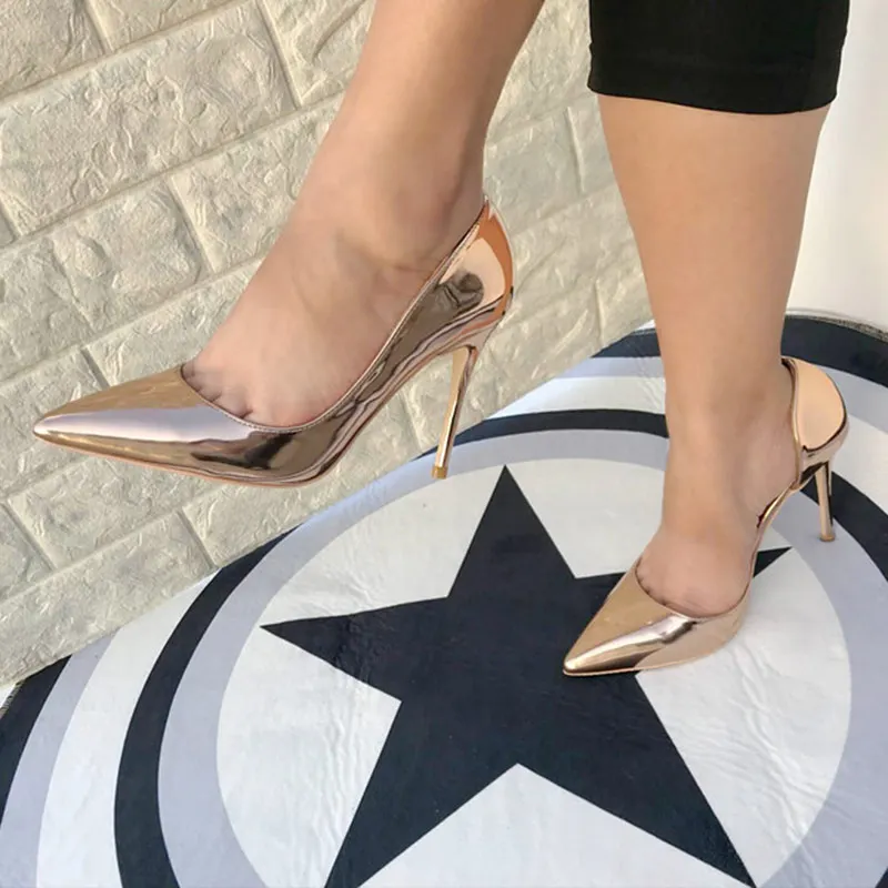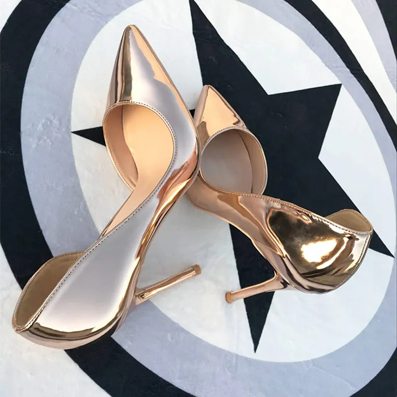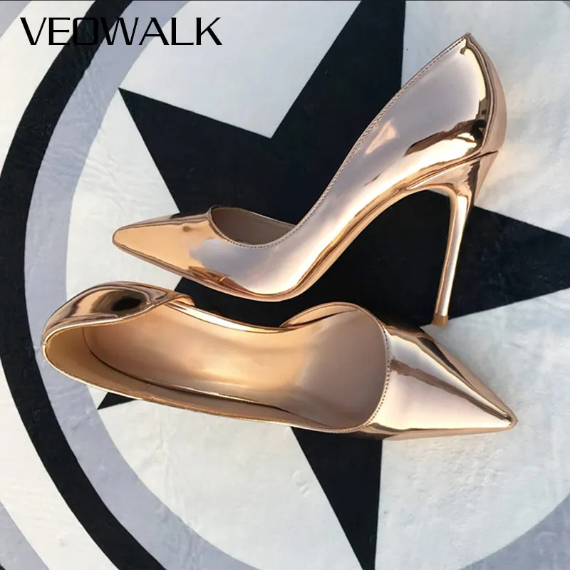 Veowalk блестящие золотистые женские сексуальные туфли на высоком каблуке, пикантные женские классические туфли-лодочки с острым носком и низким вырезом, цвета на заказ