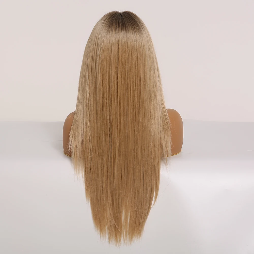 Искусственные парики для женщин, Длинные шелковистые прямые каштановые блондинки, с Т-образной частью, парики с детскими волосами, термостойкие