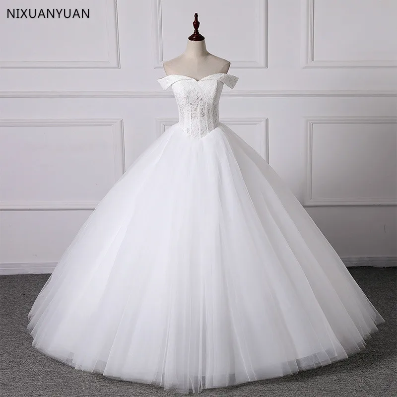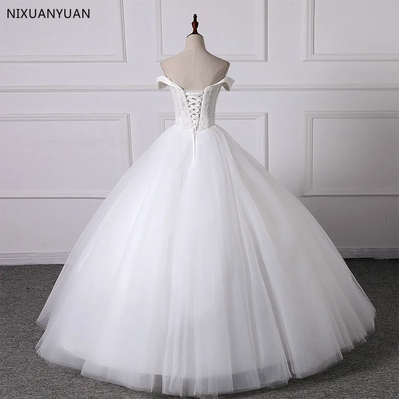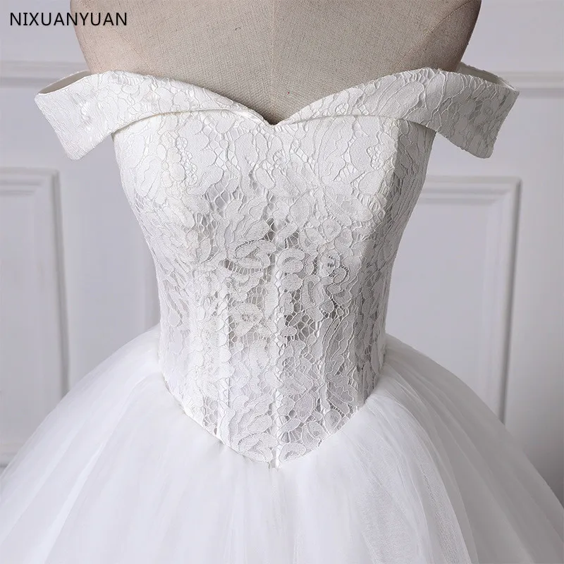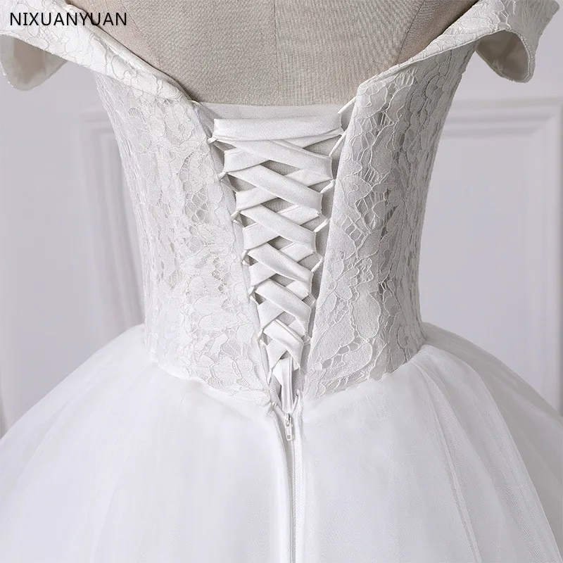 2021 Тюль с открытыми плечами на шнуровке сзади французское кружево аппликация Принцесса бальное платье Свадебные платья платье невесты