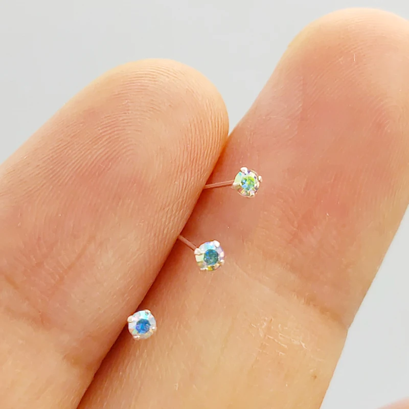 925 пробы Серебряный смешанный цвет 2 мм Кристалл нос шпилька индий...