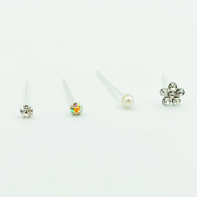 925 пробы серебро нос кольцо четыре прозрачного хрусталя 24 G кольц...