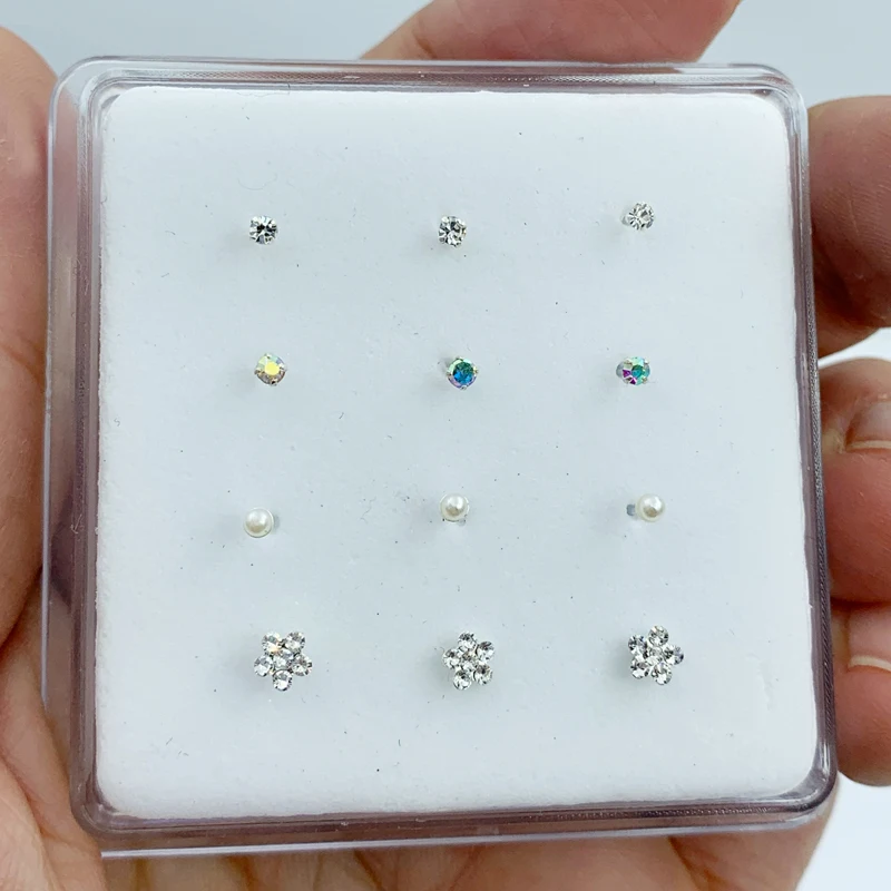 Серьги-гвоздики для носа из стерлингового серебра 925 пробы, Ювелирное Украшение для носа 12 шт.упак., подарок для женщин