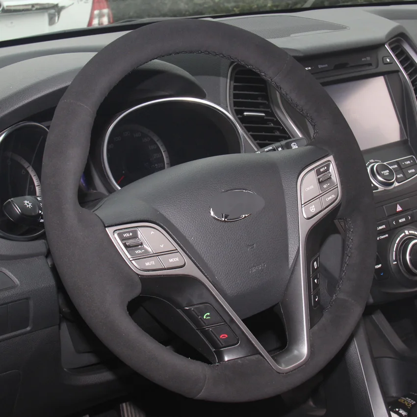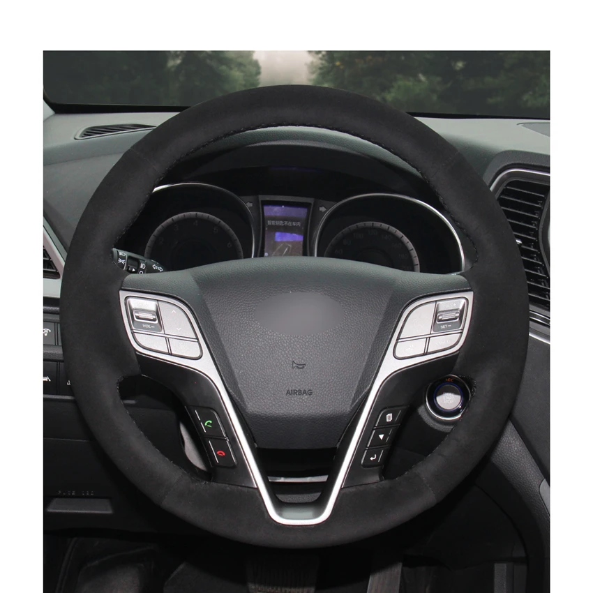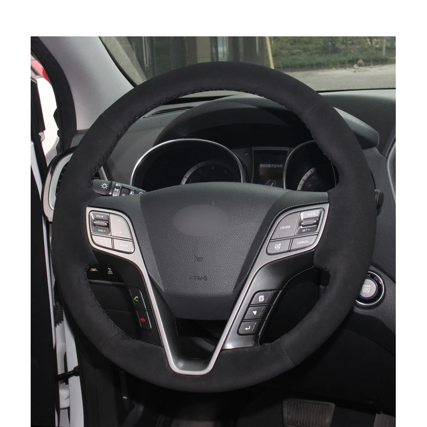 Черная замша DIY ручной работы чехол рулевого колеса автомобиля для Hyundai Santa Fe 2013-2018 ix45 2013 2014 2015 2016