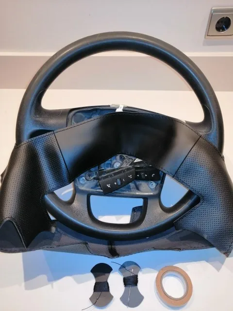 Хороший продукт, быстрая доставка. Очень полный комплект sonsisting крышки руля, швейная игла, более чем достаточная резьба, инструмент для подвешивания покрытия подушкой безопасности. Установка была легкой и веселой, я думаю, что результат довольно хороший.