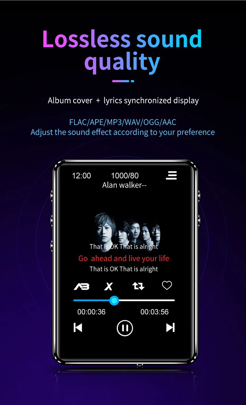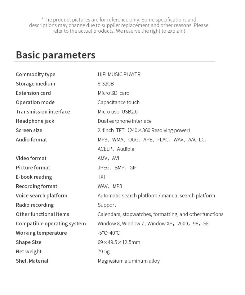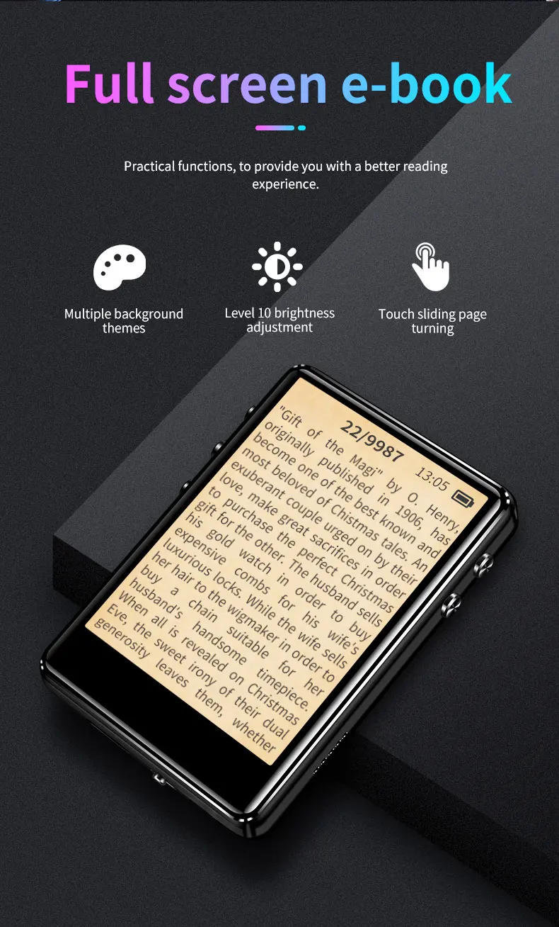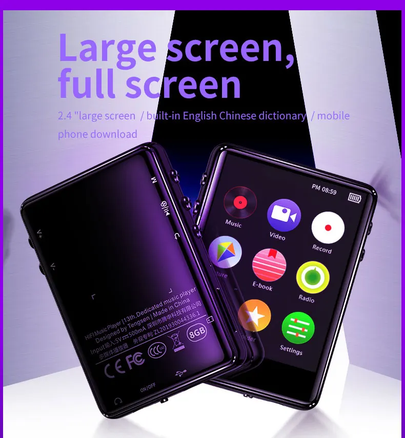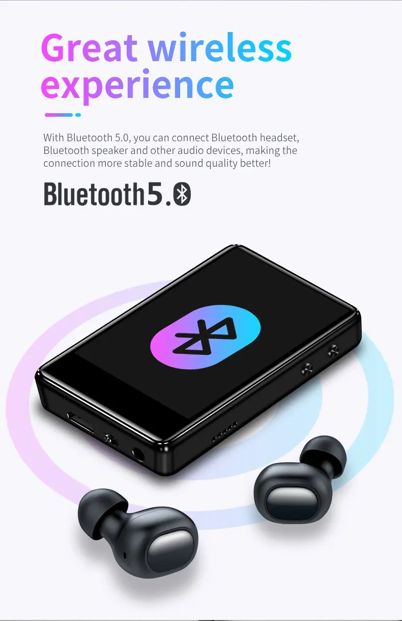 Bluetooth 5,0 MP4 плеер 8 ГБ 16 ГБ 32 ГБ 64 Гб 2,4 дюймов полный сенсорный экран FM-радио Запись электронная книга Музыка Видео плеер встроенный динамик