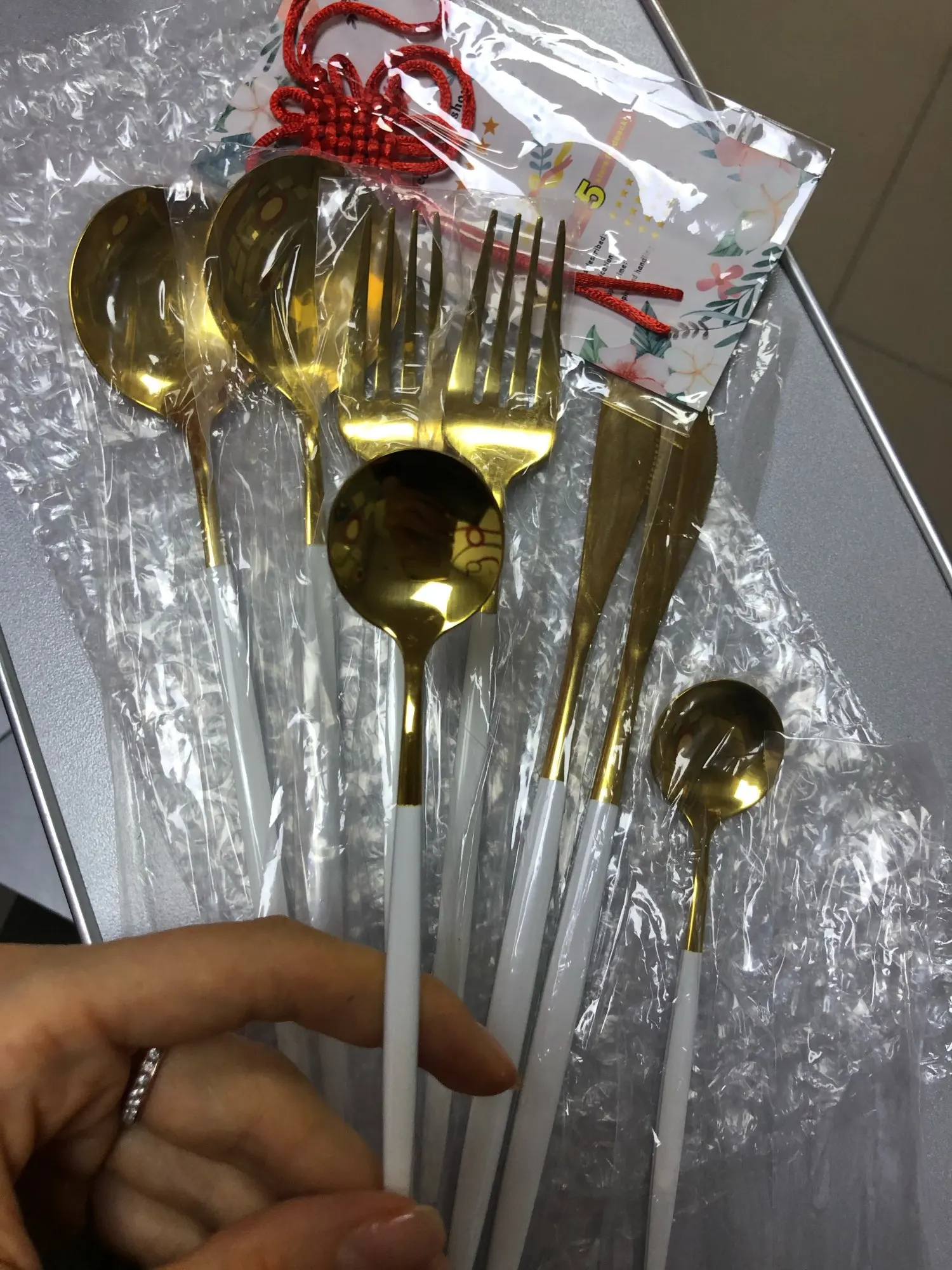 Красивые приборы, как на фото, доставка быстрая Посмотрим, не облезут ли при использовании, а так заказом довольна