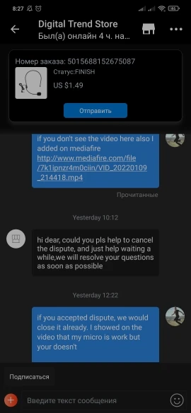 Пришел не рабочий. Записал видно как мой работает, а новый нет и добавил в открытый спор. Продавец отказался возвращать средства, но просил в лс отменить спор и мы все решим)) В итоге али приказал возвращать) Вообще не очень советую.