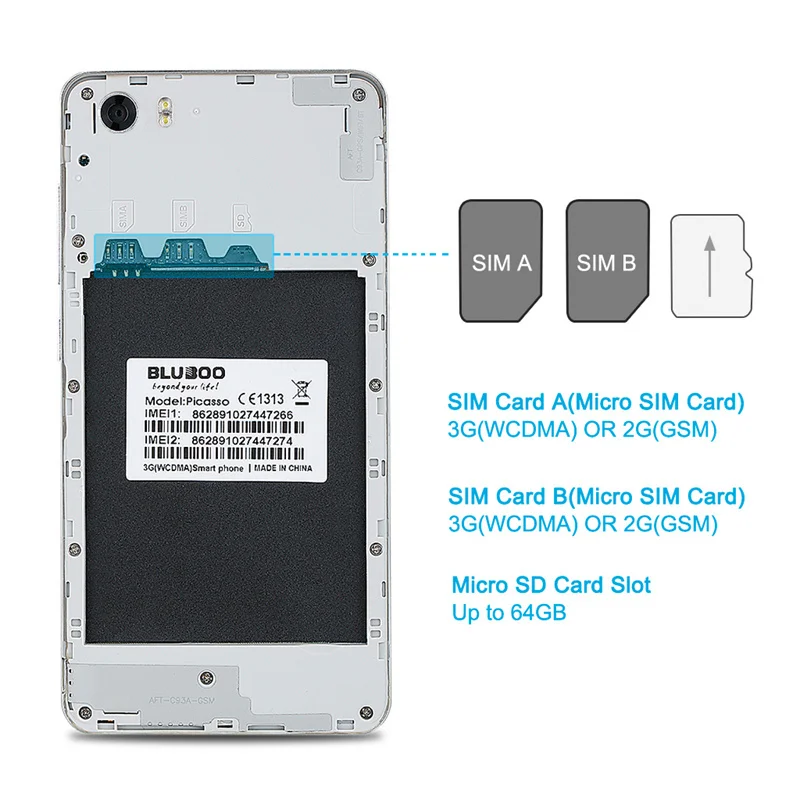 Bluboo Picasso смартфон 2 Гб 16 Гб 5,0 "MTK6580 четырехъядерный Android 5,1 2500 мАч 8.0MP WIFI GPS Dual SIM 3G WCDMA мобильный телефон
