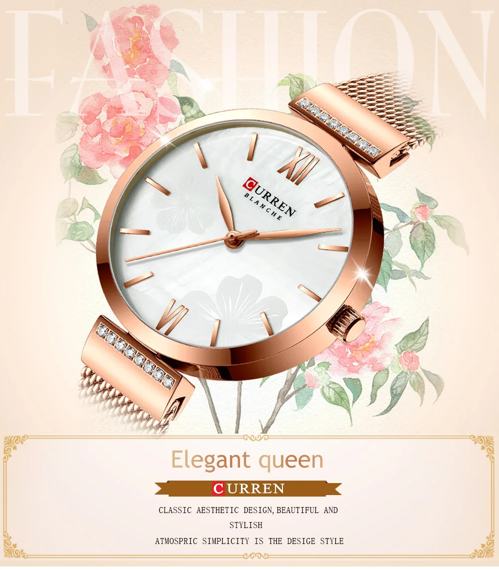 CURREN женские часы, Простые Модные кварцевые часы, женские наручные часы, браслет, часы из нержавеющей стали, relogios feminino
