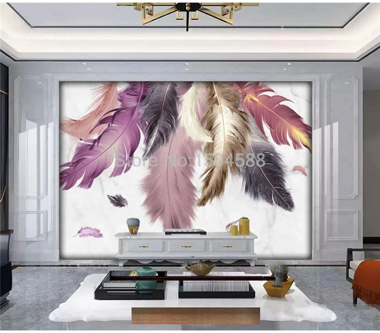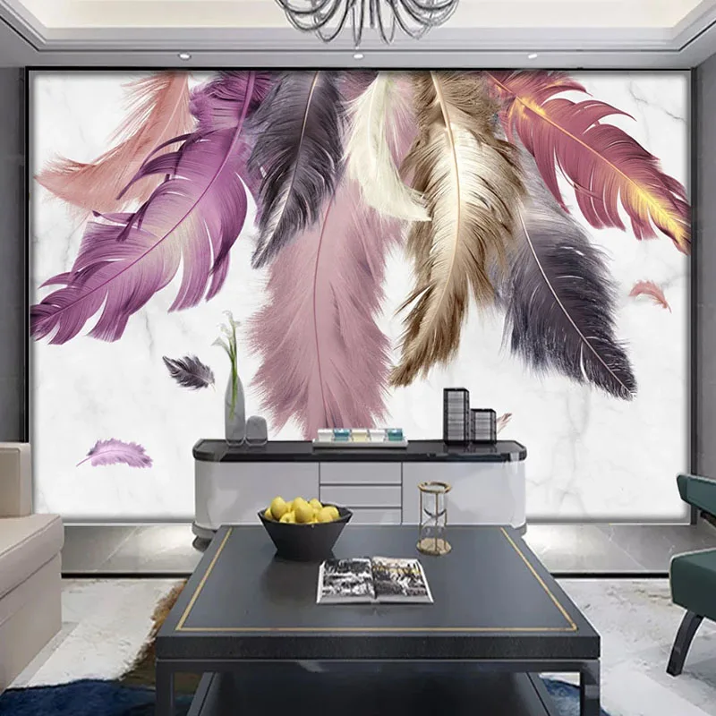 3D настенная бумага на заказ, Современная креативная мраморная живопись перьями, гостиная, ТВ, диван, спальня, домашний декор, роскошная настенная бумага для стен 3 D