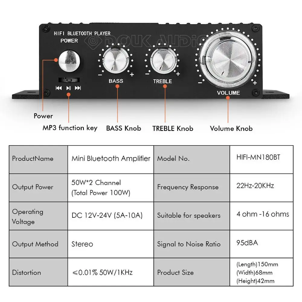 Мощность 100 Вт: приемник стереоусилителя Bluetooth обеспечивает двухканальный стереовыход 50 Вт + 50 Вт, сопротивление: 4 ~ 16 Ом. С непревзойденным превосходством звука и позволяет наслаждаться высококачественным усиленным звуком.