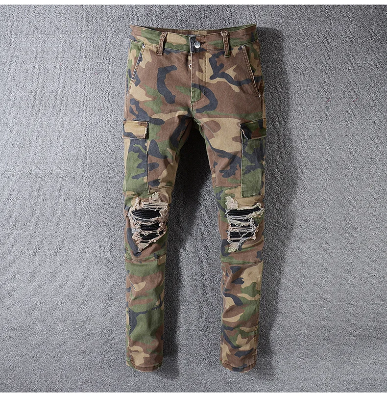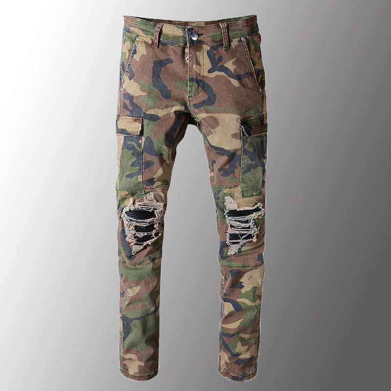 Мужские зауженные джинсы Minglu, камуфляжные прямые брюки-карго армейского зеленого цвета с карманами в стиле милитари байкера