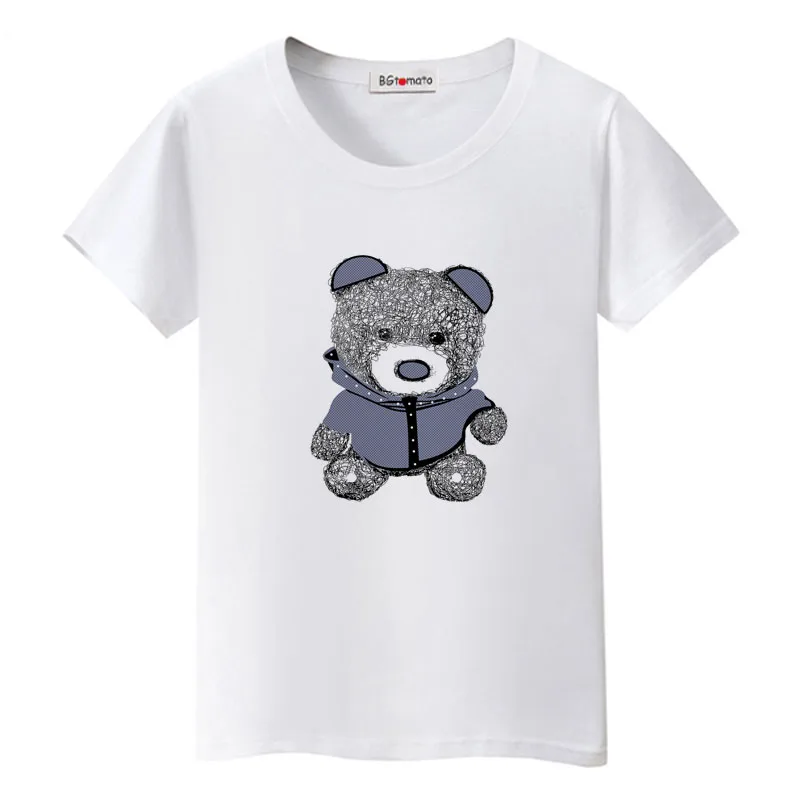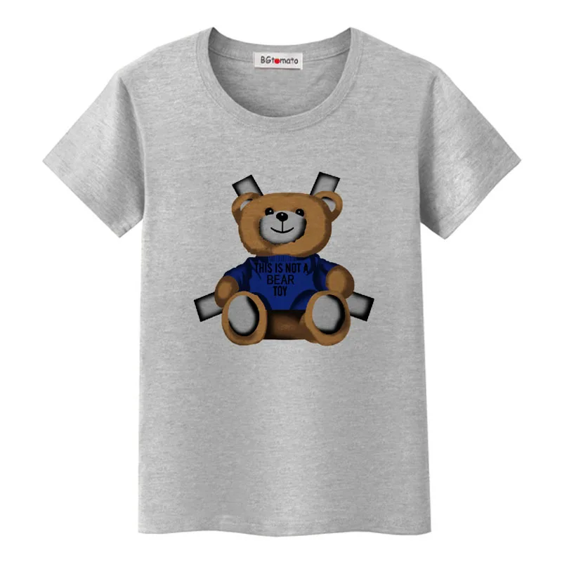 BGtomato 2021 Новая летняя модная женская футболка с коротким рукавом супер милая полицейская Мишка Тедди белые топы для девочек крутая рубашка