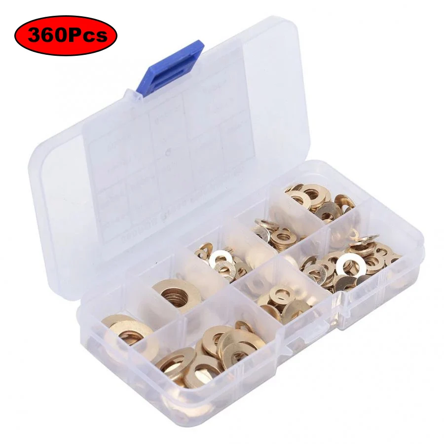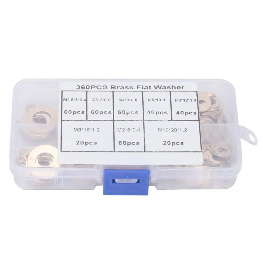 360 шт. M2.5 M3 M4 M5 M6 M8 M10 твердая латунь плоская медная шайба Shim Brass набор прокладок Kit Высокое качество