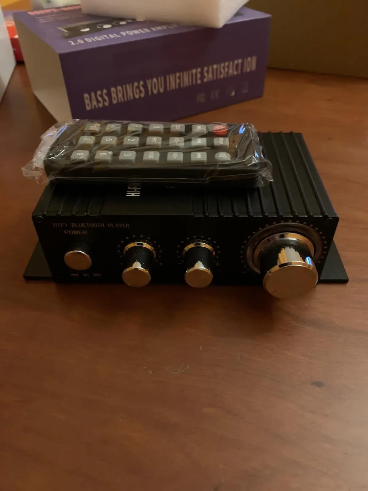 Идеальная упаковка прибыла в указанную дату, протестирована с подключением к одному корпусу, хорошая аудио средняя громкость, протестирована как с usb палкой, так и с Bluetooth работает все, Я еще не пробовал пульт дистанционного управления, потому что он без батареи и devo comprarla