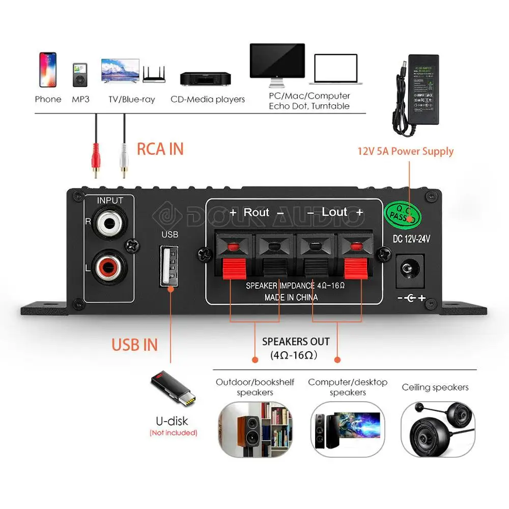 HI-FI 100 Вт 2,0 канальный Bluetooth усилитель мощности, стерео аудио приемник, цифровой усилитель для дома, автомобиля, морского порта, USB музыкальный плеер, ИК-пульт