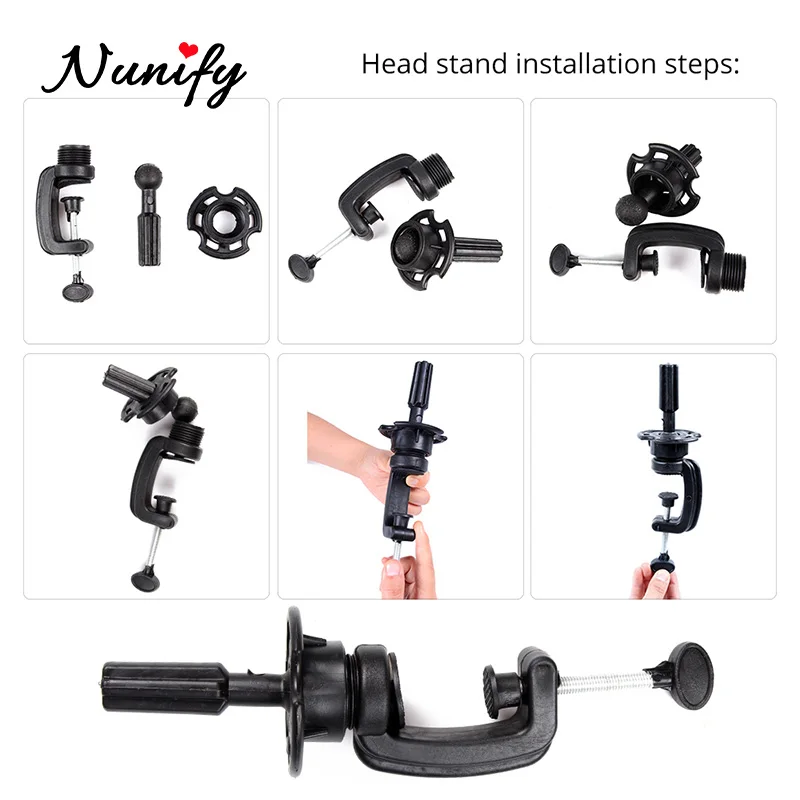 Установка: основание со стандартным монтажным отверстием (диаметр 1 дюйм), которое может сочетаться с большинством зажимов парика или манекена штатива на рынке.