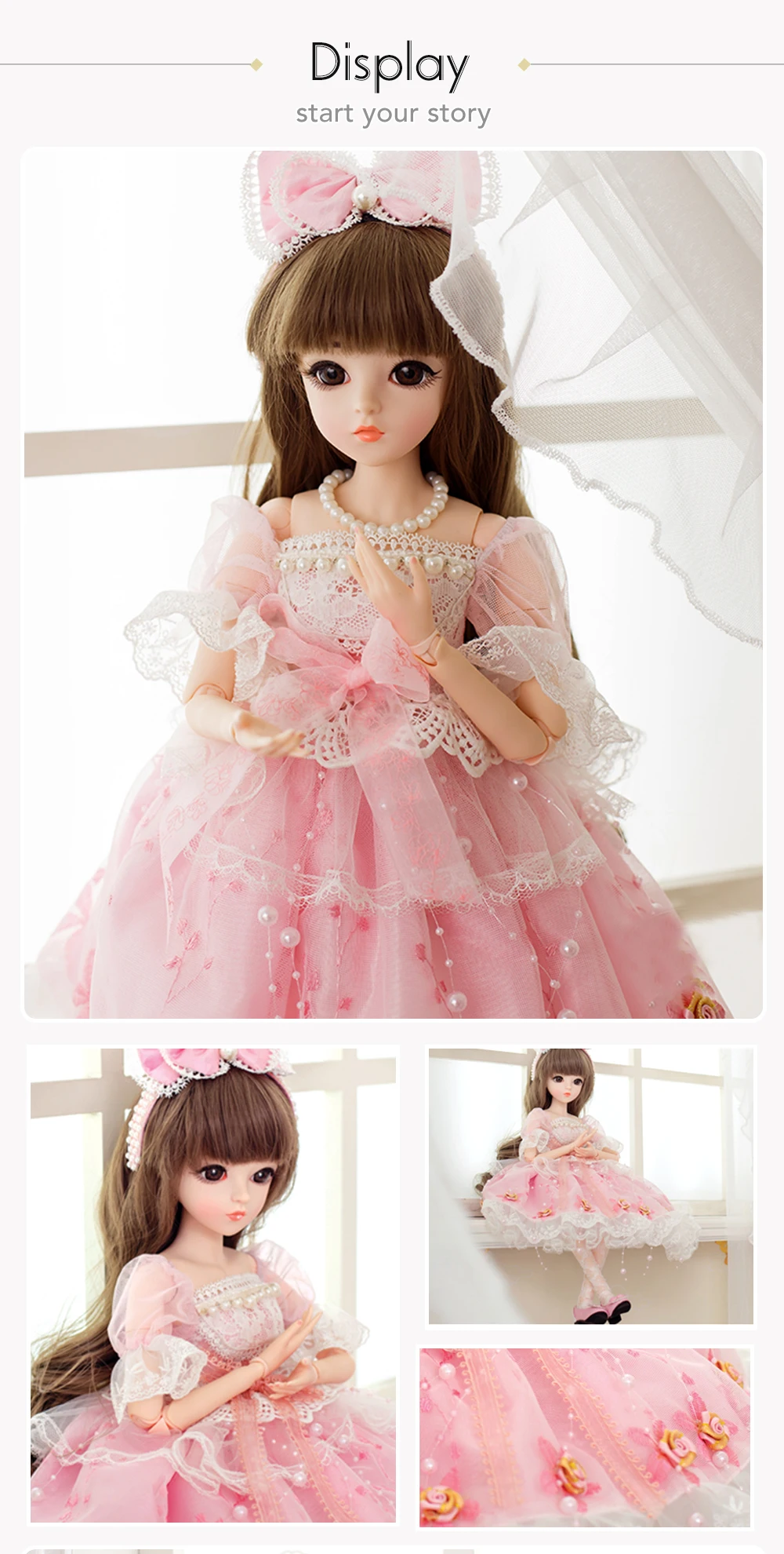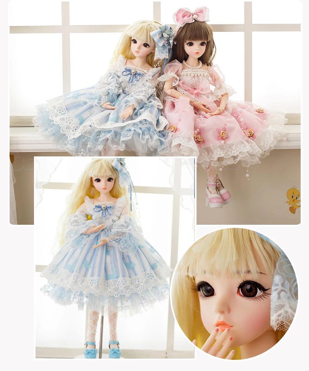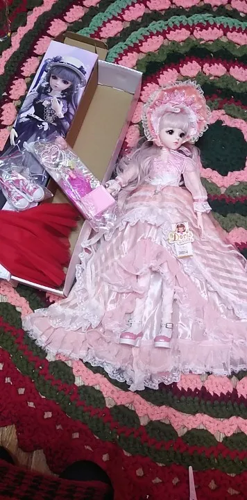 Очень красивая кукла. Пришла собранная, платье отдельно, на лице защита из пластика. Оплатила отдельно замену глаз, но оно того не стоило, надо было оставить какие были. Из-за замены глаз кукла ехала дольше. Шарниры поскрипывают на ногах, но думаю это не проблема. Продавец общительный, отвечал на все вопросы. В комплекте дополнительное розовое платье, расчёска, зеркало. Хотя лучше бы была губка для очистки(ну это я уже привередничаю)) Однозначно рекомендую
