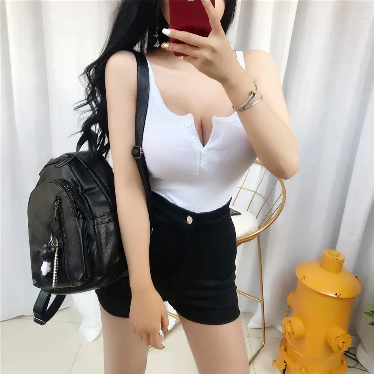 Сексуальный тонкий топ на бретелях, Женский вязаный Топ без рукавов, белый, черный бюстье с v-образным вырезом на пуговицах, летний укороченный топ feminino 2022