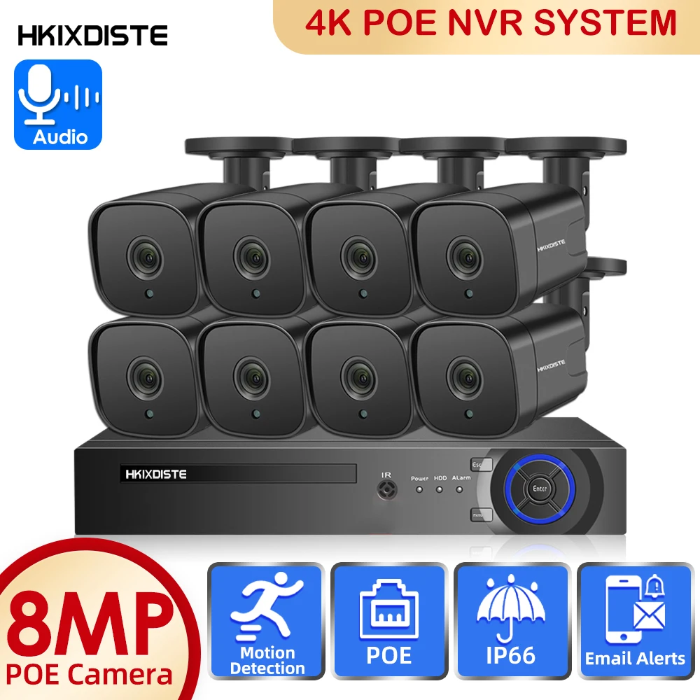 HKIXDISTE H.265 + 8CH 4K 5.0MP NVR POE, IP-камера безопасности, наружная система видеонаблюдения IR-CUT, комплект видеонаблюдения 8MP POE IPC