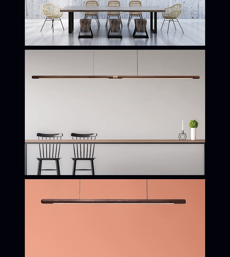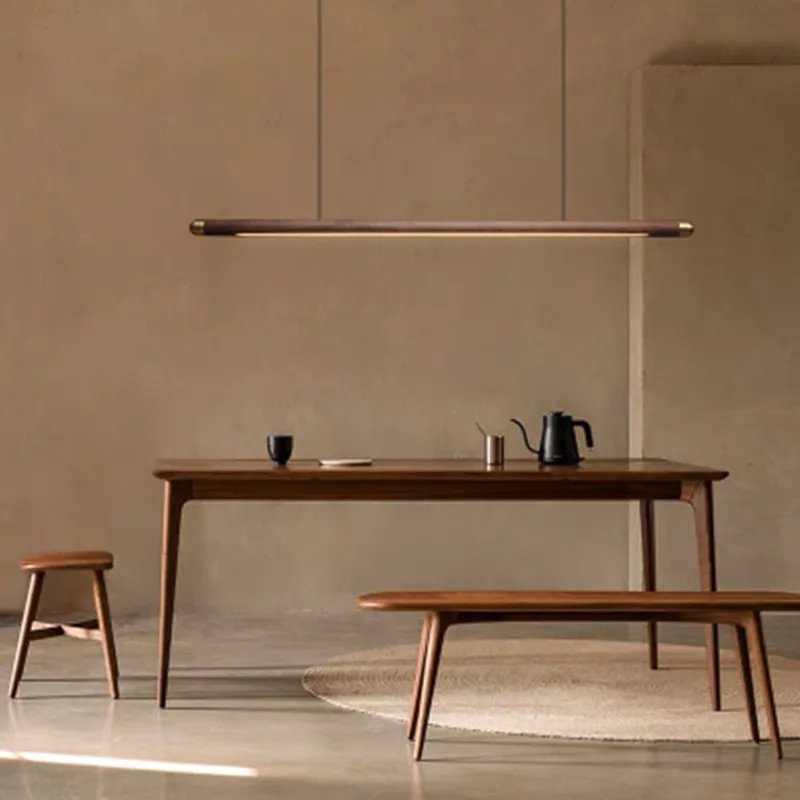 Дизайнерские подвесные светильники из дерева в скандинавском стиле для ресторана, бара, черного ореха, Минималистичная длинная полоса, светодиодная Подвесная лампа, домашний декор, освещение для столовой